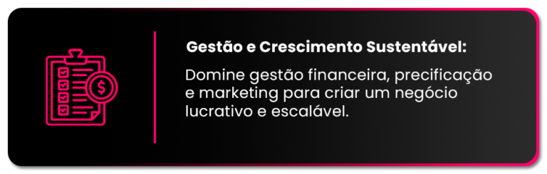 Vai dominar scripts poderosos de atendimento no WhatsApp e Direct, convencendo clientes indecisos e fechando mais vendas sem esforço. Além disso, aprenderá precificação inteligente e gestão financeira para garantir lucro de verdade.